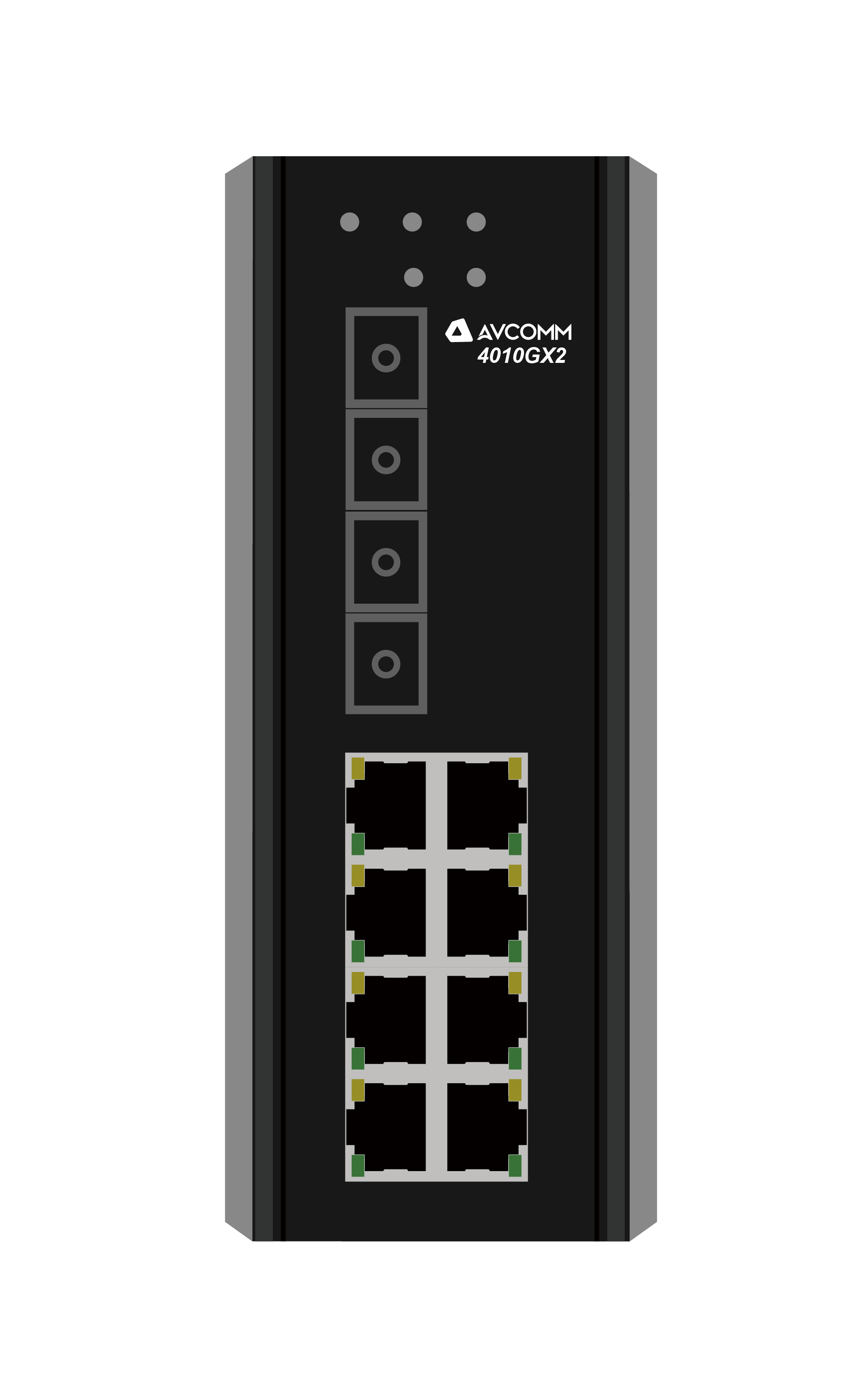 AVCOMM 4010GX2 is 8-port 10/100/1000Base-TX RJ-45 and 2-port 1000Base-X unmanaged Ethernet switch with reverse polarity protection of AC or DC input. It is highly scalable and can transmit data over long distances through fiber-optic ports. It has wide operation temperature range, high anti-EMI capability to ensure stable work in harsh industrial environments and supports DIN Rail-mounted/wall-mounted to facilitate in various industrial network applications.