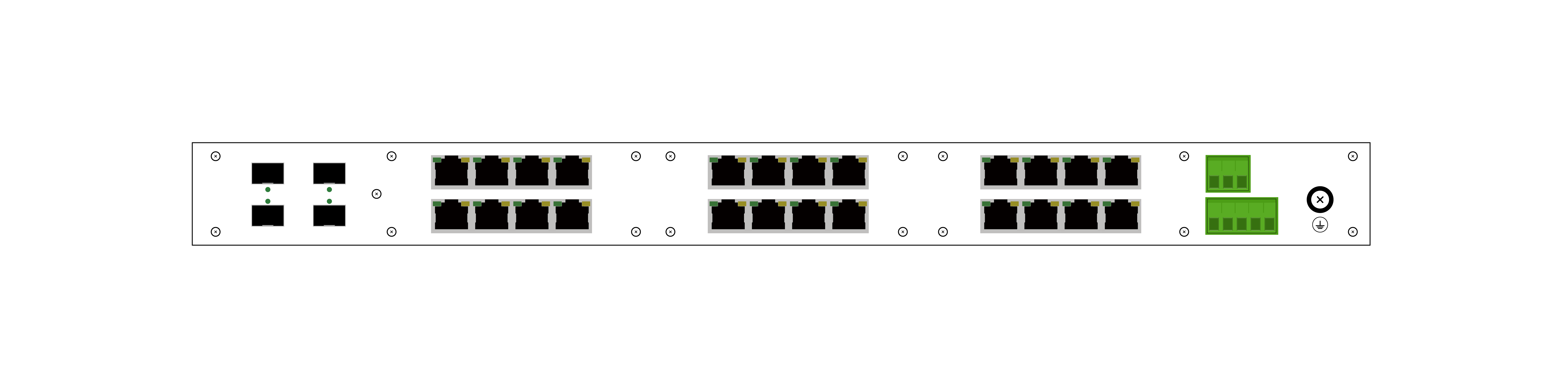 28-Port Fully Managed Industrial Ethernet Switch, 24 RJ45 10/100BaseT(X), 4 1000BaseFX (SFP) , DIN-Rail, Dual Power Input 88~264VAC, -40°C ~ +85°C
