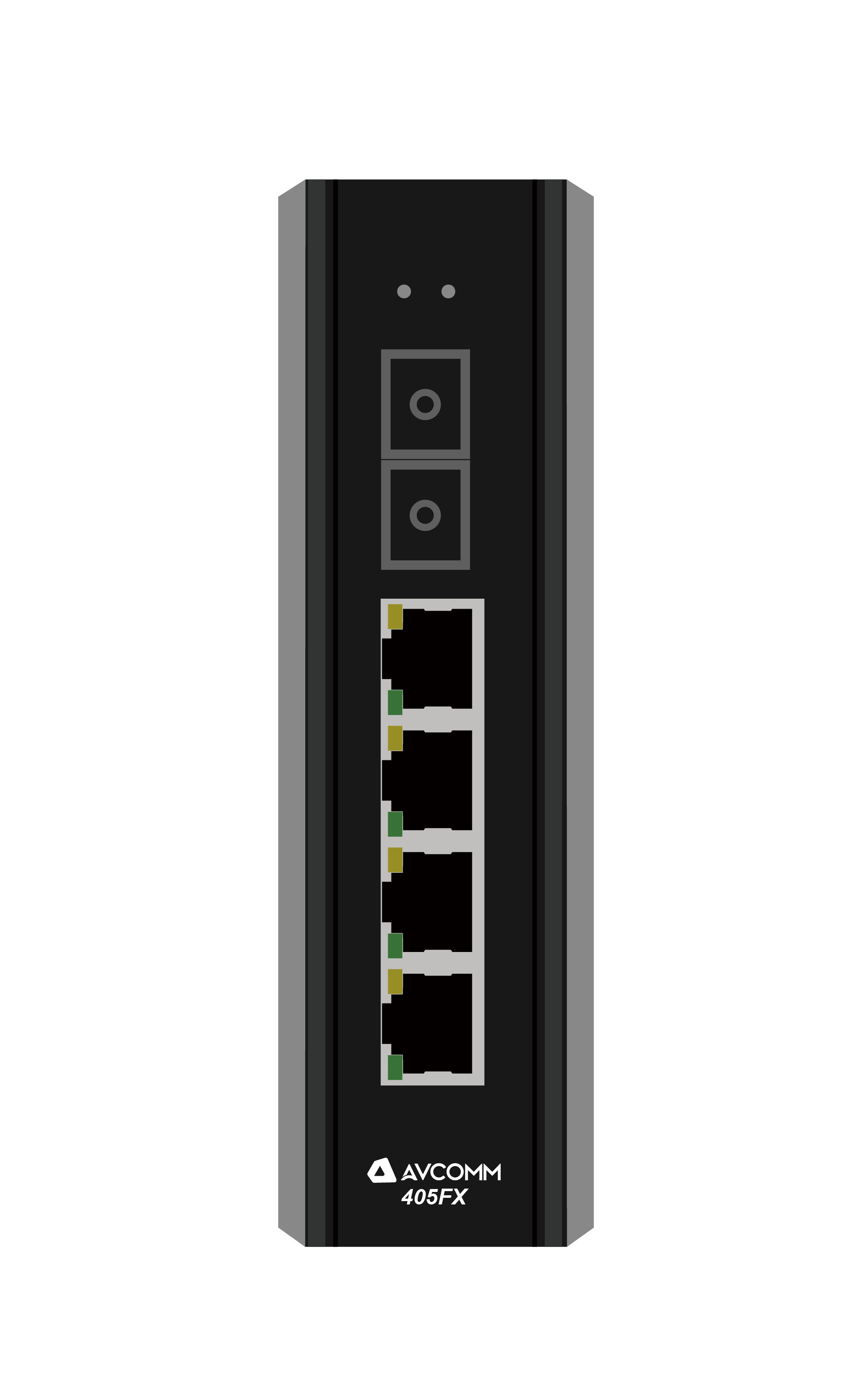 AVCOMM 405FX is a 5-port plug and play fast unmanaged Ethernet switch with reverse polarity protection of AC or DC input for automation and electrical OEM purpose. It has wide operation temperature range, high EMC performance to ensure stable work in harsh industrial environments and supports DIN Rail-mounted/wall-mounted to facilitate in various industrial network applications. AVCOMM 405FX is suitable for industrial applications such as industrial automation, intelligent transportation, video surveillance, and electrical OEMs.
