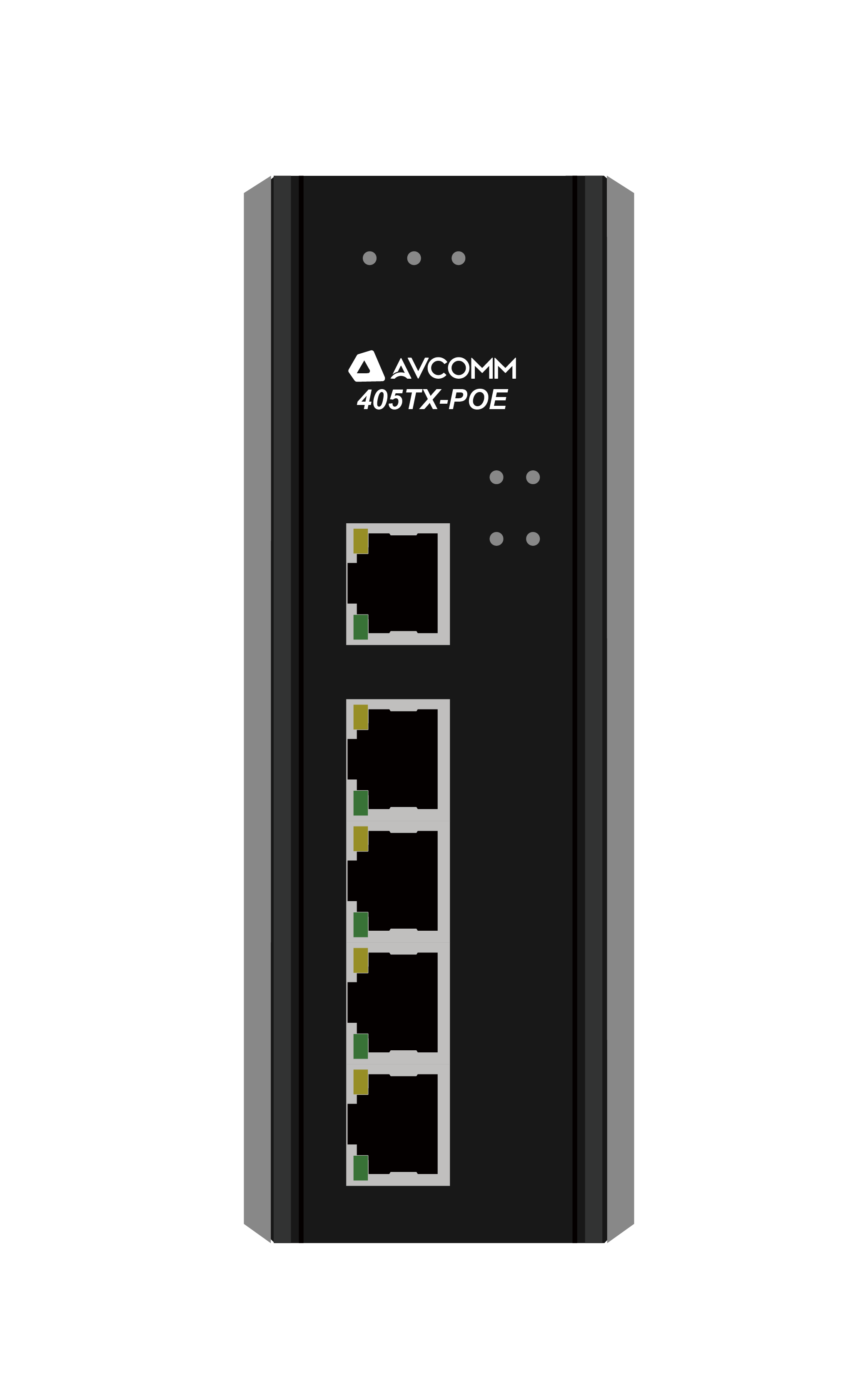 5-Port Industrial POE Unmanaged Ethernet Switch, 5 RJ45 10/100BaseT(X), Support POE/POE+, Support ITU-TG.8032, DIN-Rail, Single Power Input 10-50VDC, -40°C-85°C
