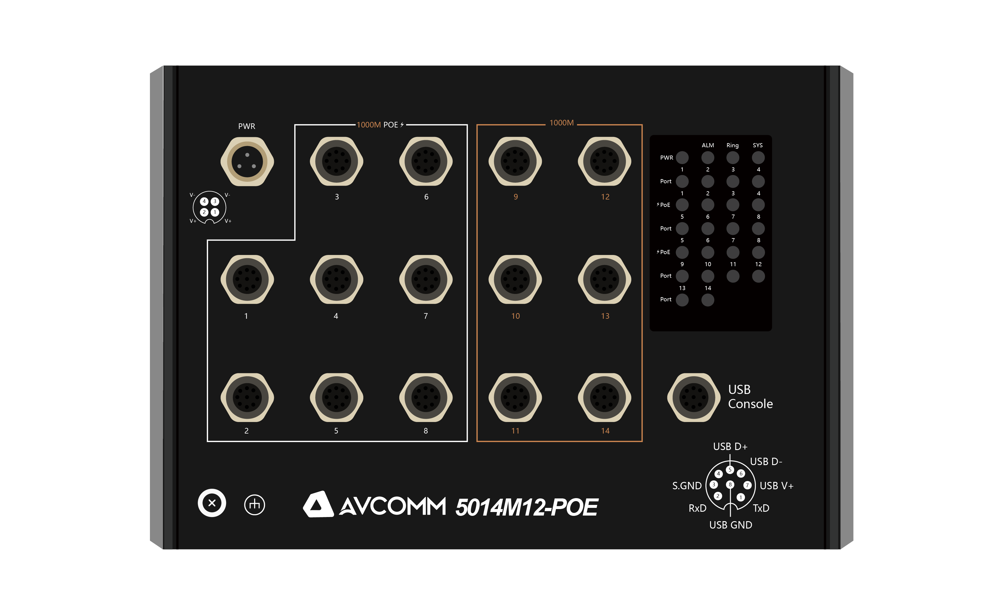 14-Port Fully Managed Industrial IP67 Ethernet Switch, 14 RJ45 Ports 10/100/1000Base-T(X), 8 RJ45 Ports Support POE/POE+, Support ITU-TG.8032, DIN-Rail, Dual Power Input 17-137VDC, -40°C-75°C